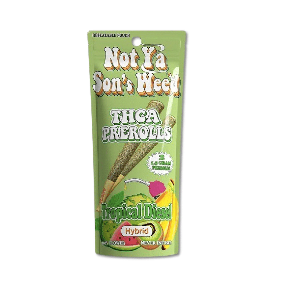 Premium THCA pre-rolls by Not Ya Sons Weed, crafted for a unique alternative for exploring the full spectrum of cannabinoids and their effects. Available as a single 2-pack or in a 10-pack box, making it perfect for both personal sessions and bulk orders.
